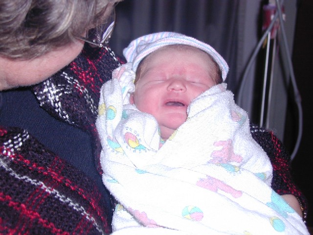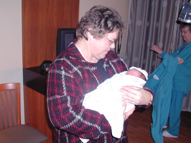 Gramma is holding Faith. I don't think Faith is too happy at the moment. |