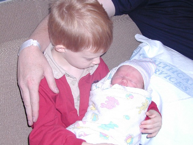 Big brother holding is little sister. |