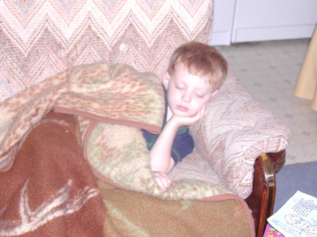 | Wes got all wored out watching his little sister. |
