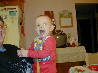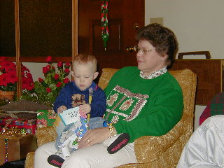 Gramma Ginny is helping me open my first present. You mean there is something past the paper??