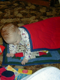 All wrapped up in the quilt Aunt Amica made just for me.